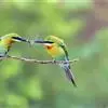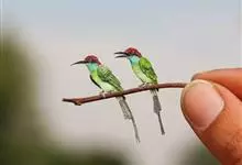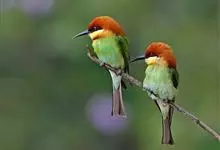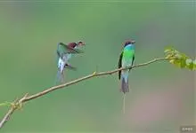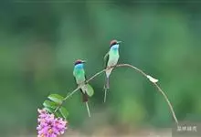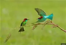 蓝颊蜂虎:是蜂虎科、蜂虎属的鸟类,共有2个亚种。体长27-33厘米,翼展46-49厘米,体重38-50克。嘴形细长而下弯,先端尖,…全部>>