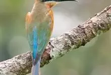蓝喉蜂是蜂虎科蜂虎属鸟类。体长26-28厘米,嘴长而弯曲,有明显细长的中央尾羽。头部、颈部和背部为巧克力色,有黑色眼纹。喉部、腰部和尾羽为蓝色。腹部和两翼为绿色。幼鸟外观似成鸟,头部、颈部和背部为绿色,…全部>>