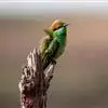 绿喉蜂虎是佛法僧目、蜂虎科的小型鸟类,共有9个亚种。身长22-25厘米,翼展29-30厘米,体重15-20克。喉绿色,额部、头顶至上背为锈红色,其余上体均为亮绿色。中央尾羽延长且端段狭细,…全部>>