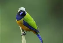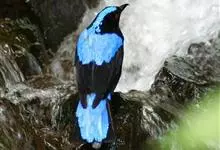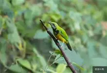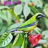 蓝翅叶鹎:小型鸟类,体长15-18厘米。雄鸟通体草绿色,尾蓝绿色,肩和翅亮蓝 色,胸缀有黄色,颏、喉黑色。雌鸟颏,喉蓝绿色。栖息在海拔1500米以下的常绿阔叶林、次生林和林缘疏林灌丛中。…全部>>