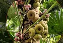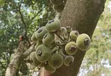 大果榕是桑科榕属的小乔木,株高可达10米;幼枝被柔毛;叶互生,宽卵状心形或近圆形;雄花无梗、匙形、花丝长,雌花生于雌株榕果内,子房白色;榕果簇生于树干基部或老茎短枝上、扁球形或陀螺形,…全部>>