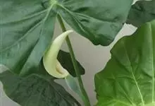 海芋 K. Koch),是天南星科海芋属的大型常绿草本植物;具匍匐根茎,有直立地上茎,基部生不定芽条;叶多数,亚革质,草绿色,箭状卵形,叶柄绿或污紫色,螺旋状排列,粗厚;花序梗圆柱形,绿色,有时污紫色,…全部>>