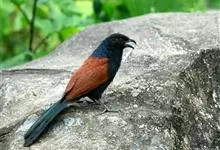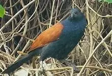 褐翅鸦鹃,是鹃形目鸦鹃科鸦鹃属的鸟类。褐翅鸦鹃的身体为黑色;头颈和胸带蓝紫色金属光泽并具黑亮的羽干纹,下胸至腹部泛金属绿光泽;两翼和肩部为棕栗色,外侧飞羽具暗色羽端,尾羽闪铜绿色光泽;虹膜赤红色,…全部>>