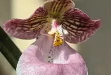 兜兰是兰科兜兰属的多年生草本植物。根茎粗状,直径3~4毫米,有很多须根;叶基生,叶片肉质增厚,排成紧密2列,叶片呈长圆形,表面有极短柔毛;总状花序,粉白色,花葶直立或倾斜,深绿色或褐色,花瓣大,呈唇形,…全部>>