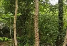 刺楸 Koidz.),五加科刺楸属落叶乔木,高30米。树干通直;树皮纵裂灰黑褐色;叶掌状分裂长圆状卵形;伞形花序,花较小白色或淡黄绿色;果蓝黑色;花期7-8月,果期9-11月。变种有深裂叶刺楸,…全部>>