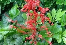 赪桐 Sweet)是唇形科、大青属灌木,高1-4米,叶片圆心形,顶端尖或渐尖,基部心形,边缘有疏短尖齿,表面疏生伏毛,二歧聚伞花序组成顶生,大而开展的圆锥花序,花序的最后侧枝呈总状花序,花萼红色,…全部>>