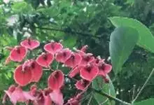 翅果刺桐 Merr.)是豆科,刺桐属乔木,高12-15米,具粗壮的刺。羽状复叶具3小叶,小叶膜质,卵状三角形,先端短渐尖,基部圆或宽楔形,两面无毛;总状花序长7-10厘米,有褐色绒毛;花红色,花萼钟状,…全部>>