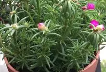 大花马齿苋:一年生草本,高10-30厘米。茎平卧或斜升,紫红色,多分枝,节上丛生毛。叶密集枝端,较下的叶不规则互生,叶片细圆柱形,无毛。花单生或数朵簇生枝端,直径2.5-4厘米,…全部>>