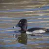 斑背潜鸭体长42-47厘米,翼展68-75厘米,体重750-1350克,是中等的体矮型鸭。雄鸟体比凤头潜鸭长,背灰,无羽冠。雌鸟与雌凤头潜鸭区别在于嘴基有一宽白色环。…全部>>