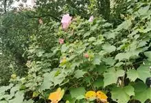 木芙蓉,锦葵科木槿属落叶灌木或小乔木。小枝上有细绒毛;叶片为卵状心形,托叶为披针形,常早落;花单生,花萼为钟形,花冠初为白色或淡红色,后逐渐变为深红色;果实为扁球形,有淡黄色的毛附着。花期8到10月。…全部>>