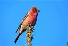 普通朱雀是雀形目雀科朱雀属鸟类,又名红朱雀、马料、青麻料。雄鸟上体红色,下体淡红色;头部、喉部、胸部及腰部亮红色;背部褐色染红色;两翼及尾黑褐色,羽缘染红色。雌鸟上体橄榄褐色,下体近白色,…全部>>