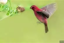 酒红朱雀小型鸟类,体长13~15厘米。雄鸟通体深红色,头部深朱红或棕红色,下背和腰玫瑰红色,眉纹粉红色而具丝绢光泽。两翅和尾黑褐或灰褐色、具暗红色狭缘,内侧两枚三级飞羽具淡粉红色先端。…全部>>