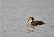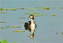 凤头鸊鷉:体长为50厘米以上,体重为0.5-1千克。前额和头顶部黑褐色,枕部两侧的羽毛往后延伸,分别形成束羽冠。脚的位置几乎处于身体末端,尾羽短而不显,趾侧有瓣蹼。瓣蹼十分发达,除了适于游水之外,…全部>>