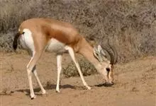 阿拉伯沙瞪羚:是偶蹄目、牛科、瞪羚属的食草动物。头尾长97厘米,身高约55-60厘米。雄性体重约为22千克,雌性性体重为18千克。雌雄都有犄角,雄性长达27厘米,雌性15厘米。体型较小。腿细长,…全部>>