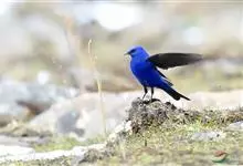 蓝大翅鸲是鹟科、大翅鸲属小型鸟类,体长19-21厘米。两翅尖长。雄鸟通体鲜紫蓝色具金属光泽。两翅和尾黑色。雌鸟上体灰褐色,头、颈、翕具棕白色纵纹,翅上有白色翅斑。虹膜暗褐色,嘴、脚黑色。…全部>>