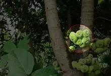 聚果榕是桑科榕属植物,乔木,高达25-30米,胸径60-90厘米,树皮灰褐色。叶薄革质,椭圆状倒卵形至椭圆形或长椭圆形,长10-14厘米,宽3.5-4.5厘米。榕果聚生于老茎瘤状短枝上,…全部>>