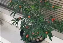珊瑚樱是茄科茄属植物。株高达2米;植株无毛;叶窄长圆形或披针形,长1-6厘米,基部窄楔形下延,全缘或波状,侧脉4-7对;叶柄长2-5毫米;花单生,稀双生或成短总状花序与叶对生或腋外生,…全部>>