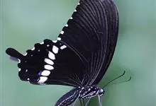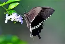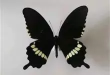 玉斑凤蝶Papilio helenus 别名白纹凤蝶,是凤蝶科凤蝶属美凤蝶亚属大型种类。雌雄同型;体翅皆黑色,后翅正面中室外有3个并列的白色斑,亚外缘有1列模糊的新月形红色斑,…全部>>