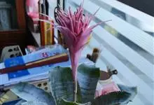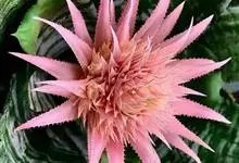 美叶光萼荷是凤梨科光萼荷属的多年生附生常绿草本植物。叶基生,莲座状叶丛基部围成筒状,叶呈绿色条形至剑形,被灰色鳞片;花葶直立,花序穗状,密集成阔圆锥状球形花头,苞片呈淡玫瑰红色革质,先端尖,小花无柄,…全部>>