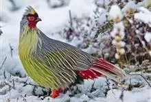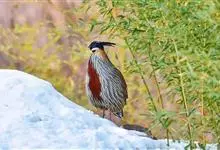 血雉雉科血雉属鸟类,别名血鸡、松花鸡,血雉的雄鸟大覆羽、尾下覆羽、尾上覆羽、脚、头侧、腊膜为红色,故称血雉。其别名甚多,各地皆异。在甘肃,因其胸侧和翅上覆羽沾绿,被称为“绿鸡”;因其羽毛形似柳叶,…全部>>
