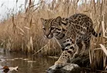 渔猫:是猫科、豹猫属的一种中等体型的食肉动物,体长65-85厘米,体重约为5千克。渔猫的头部较宽,吻部较长,耳朵又小又圆,耳背是黑色的,中间还点缀着明显的白斑。…全部>>