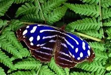 大紫蛱蝶为大型蝶种,翅展约86~110mm。翅紫黑色,有白色斑点点缀其中,雄蝶的翅具强烈紫色虹彩,其余部分暗褐色,后翅臀角具粉色斑。雌蝶体型较大,但是没有蓝紫金属光泽。原产于东亚的蝶类。…全部>>