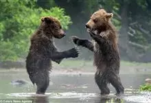 棕熊是熊科熊属哺乳动物。体形健硕,肩背隆起,身后长有一条短尾。毛色多为棕褐色或棕黄色;老年呈银灰色;幼年为棕黑色。野生条件下寿命为20—30年。棕熊分布广泛,主要分布在欧亚大陆和北美,…全部>>