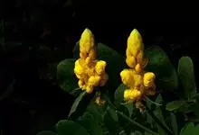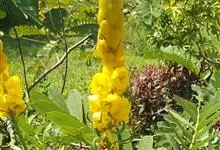 翅荚决明 Roxb.)是豆科决明属灌木植物,高3米。羽状复叶,在叶柄和叶轴上有窄翅;小叶倒卵状长圆形,先端圆钝,基部斜截形;总状花序顶生和腋生;荚果带形,…全部>>