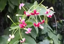 使君子 Jongkind)是使君子科、使君子属攀援灌木,叶对生,椭圆形,两面均被灰白色柔毛。穗状花序,倒挂下垂。花期夏秋。果有五棱,熟时黑色,种子白色。分布于印度、缅甸、菲律宾和中国。喜温润,深根性,…全部>>