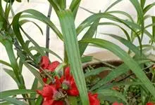 洋金凤 Sw.)是豆科、云实属植物。枝光滑,绿色或粉绿色,散生疏刺。二回羽状复叶;羽片4-8对,对生;小叶7-11对,长圆形或倒卵形,顶端凹缺;小叶柄短。总状花序近伞房状,顶生或腋生,…全部>>
