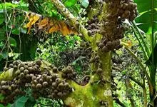 大果榕是桑科榕属的小乔木,株高可达10米;幼枝被柔毛;叶互生,宽卵状心形或近圆形;雄花无梗、匙形、花丝长,雌花生于雌株榕果内,子房白色;榕果簇生于树干基部或老茎短枝上、扁球形或陀螺形,…全部>>