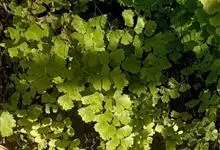铁线蕨,铁线蕨科铁线蕨属多年生草本植物,其根状茎横走,披棕色披针形鳞片;叶片卵状三角形,顶端钝圆并有细锯齿,叶脉扇状分叉;孢子囊群生于囊群盖下面;无花,以孢子繁殖花色;分株繁殖为主,生长期均可,…全部>>