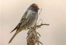 金额丝雀:为雀科丝雀属的鸟类。体重10-14克,体长109-131毫米。是一种体型较小的褐色斑驳的雀鸟。头近黑,额至顶冠有鲜红色块斑。雄雌同色,体羽在繁殖期更为亮丽。幼鸟似成鸟但头色较淡,…全部>>