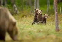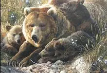 棕熊是熊科熊属哺乳动物。体形健硕,肩背隆起,身后长有一条短尾。毛色多为棕褐色或棕黄色;老年呈银灰色;幼年为棕黑色。野生条件下寿命为20—30年。棕熊分布广泛,主要分布在欧亚大陆和北美,…全部>>