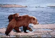 棕熊是熊科熊属哺乳动物。体形健硕,肩背隆起,身后长有一条短尾。毛色多为棕褐色或棕黄色;老年呈银灰色;幼年为棕黑色。野生条件下寿命为20—30年。棕熊分布广泛,主要分布在欧亚大陆和北美,…全部>>