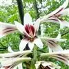 大百合 Makino)是百合科大百合属的多年生草本植物。小鳞茎卵形;叶纸质,网状脉,基生叶卵状心形或宽,茎生叶卵状心形;总状花序,花狭喇叭形,内具淡紫红色条纹,花丝向下渐扩大,子房圆柱形;蒴果近球形,…全部>>
