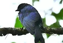 发冠卷尾是中型鸟类,体长28-35厘米。通体绒黑色缀蓝绿色金属光泽,额部具发丝状羽冠,外侧尾羽末端向上卷曲。栖息于海拔1500米以下的低山丘陵和山脚沟谷地带,多在常绿阔叶林、次生林或人工松林中活动。…全部>>