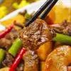 新疆大盘鸡又名为沙湾大盘鸡,是新疆名菜,起源于20世纪80年代,主要用料为鸡块和土豆块、四川粉皮,配皮带面烹饪而成。 色彩鲜艳、爽滑麻辣的鸡肉和软糯甜润的土豆,辣中有香、粗中带细,是餐桌上的佳品。全部>>