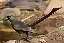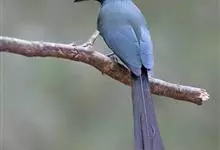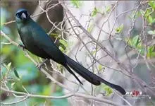 盘尾树鹊,是雀形目鸦科的珍稀鸟类,是一种中等体型的近黑色树鹊。尾甚长而端部展开;通体体羽闪亮深灰色,并具铜绿色光泽;嘴粗厚而呈钩状;眼先蓝色。虹膜蓝色;嘴黑色;脚黑色。单独或成对活动,…全部>>