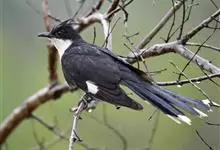 斑翅凤头鹃: 成鸟具羽冠,上体及头侧、翅、尾等黑色,具铁绿色亮辉,尾羽端部具白斑,两侧者形宽,中央者较狭;下体白色、淡灰白或略带棕黄色。虹膜褐至红褐色;嘴黑色;脚灰蓝黑色。…全部>>