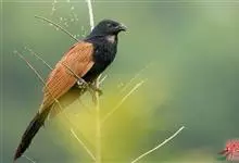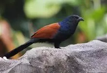褐翅鸦鹃,是鹃形目鸦鹃科鸦鹃属的鸟类。褐翅鸦鹃的身体为黑色;头颈和胸带蓝紫色金属光泽并具黑亮的羽干纹,下胸至腹部泛金属绿光泽;两翼和肩部为棕栗色,外侧飞羽具暗色羽端,尾羽闪铜绿色光泽;虹膜赤红色,…全部>>