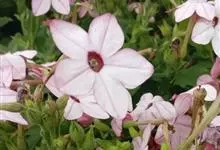 花烟草是茄科烟草属多年生草本植物。植株全体被粘毛;叶在茎下部铲形或矩圆形,基部稍抱茎或具翅状柄,向上成卵形或卵状矩圆形,近无柄或基部具耳,接近花序即成披针形;花序为假总状式,疏散生几朵花,…全部>>