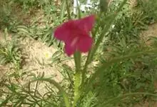 角蒿是紫葳科角蒿属的一年生至多年生草本植物。茎分枝,叶互生,回羽状细裂;总状花序顶生,小苞片线形,花萼钟状,萼齿钻状,花冠钟状漏斗形;菊果细圆柱形;种子四周具透明膜质翅;花期5~9月,果期10~11月。…全部>>