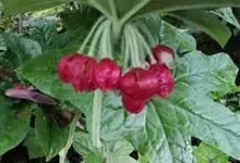 八角莲 M. Cheng)小檗科鬼臼属的多年生草本。植株高40~150厘米;根状茎直立,不分枝,无毛,淡绿色;叶互生,薄纸质,呈盾状,叶脉明显隆起,边缘有细齿;花深红色,5~8朵簇生于叶下方,下垂,…全部>>