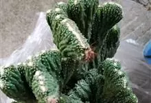 麒麟掌,是大戟科大戟属多年生植物。为金刚纂的带化变异变种。麒麟掌的株乳汁丰富;它的茎圆柱状,上部多分枝,绿色;叶互生,稀少,常生于嫩枝顶端脊上,倒卵形、倒卵状长圆形或匙形,顶端钝圆,具小凸尖,全缘,…全部>>