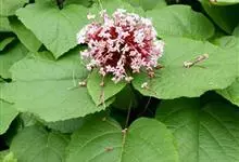 臭牡丹,唇形科大青属灌木,植株有臭味;花序轴、叶柄密被褐色、黄褐色或紫色脱落性的柔毛;小枝近圆形,皮孔显著;叶片纸质,宽卵形或卵形;伞房状聚伞花序顶生,密集;花冠淡红色、红色或紫红色;核果近球形,…全部>>