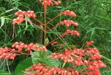 赪桐 Sweet)是唇形科、大青属灌木,高1-4米,叶片圆心形,顶端尖或渐尖,基部心形,边缘有疏短尖齿,表面疏生伏毛,二歧聚伞花序组成顶生,大而开展的圆锥花序,花序的最后侧枝呈总状花序,花萼红色,…全部>>