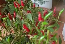 观赏辣椒,观赏辣椒根系发达,茎直立,茎部木质化,分枝能力强,分枝习性为双叉状分枝和三叉分枝。小果类型的植株高大,分枝多,大果类型的则相反。单叶互生,全缘,卵圆形,叶片大小、色泽与青果的大小色泽有相关性。…全部>>