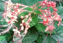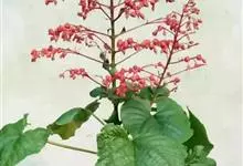 赪桐 Sweet)是唇形科、大青属灌木,高1-4米,叶片圆心形,顶端尖或渐尖,基部心形,边缘有疏短尖齿,表面疏生伏毛,二歧聚伞花序组成顶生,大而开展的圆锥花序,花序的最后侧枝呈总状花序,花萼红色,…全部>>