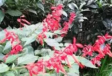 一串红,又称爆仗红、象牙红,为唇形科鼠尾草属植物。花序修长,色红鲜艳,花期又长,适应性强,为中国城市和园林中最普遍栽培的草本花卉。原产巴西、南美洲。喜温暖和阳光充足环境。不耐寒,耐半阴,忌霜雪和高温,…全部>>